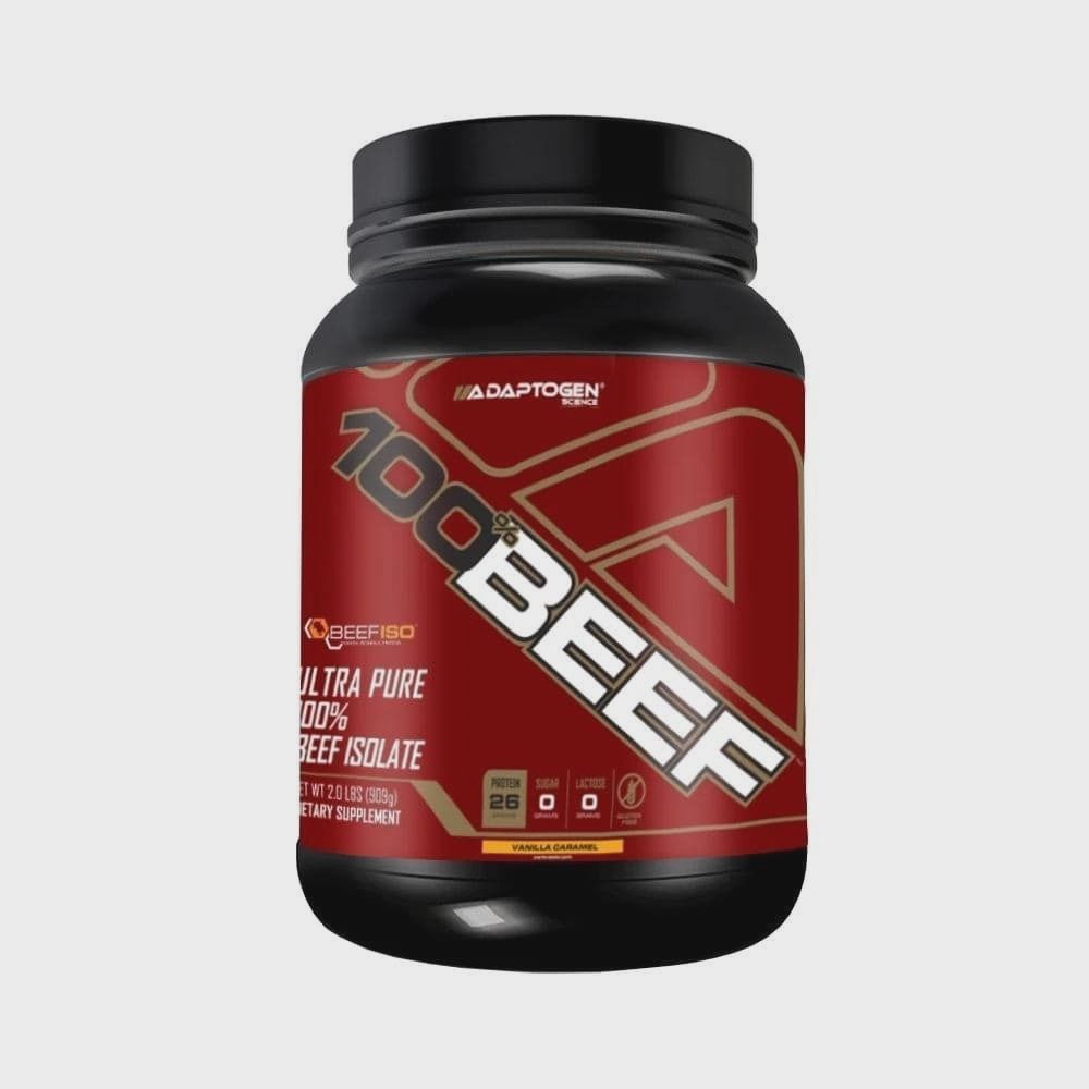 O 100% Beef 2 Lbs - Adaptogen Science é uma opção prática e saborosa para quem deseja aumentar o seu aporte proteico diário. Cada porção apresenta 26g de proteínas.